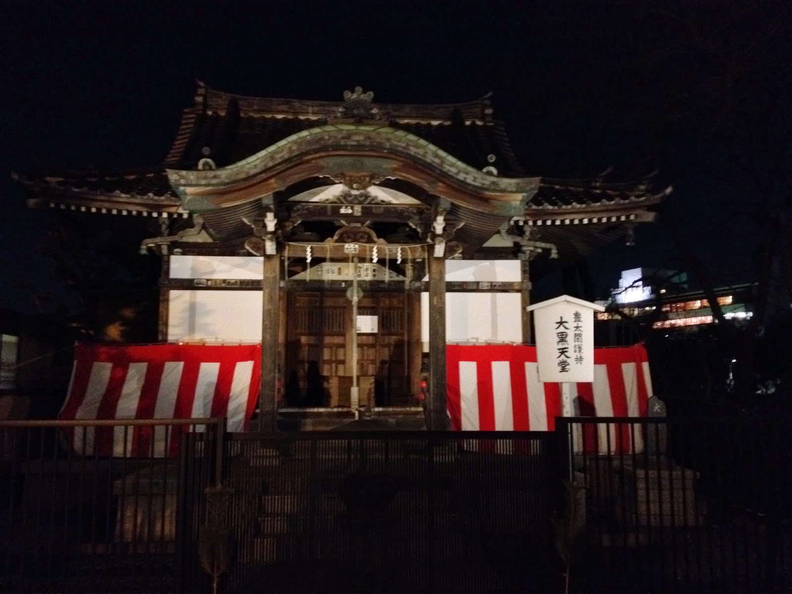 Ueno has two temples, one up the hill and one below. The one up the hill was lit up with spotlights.